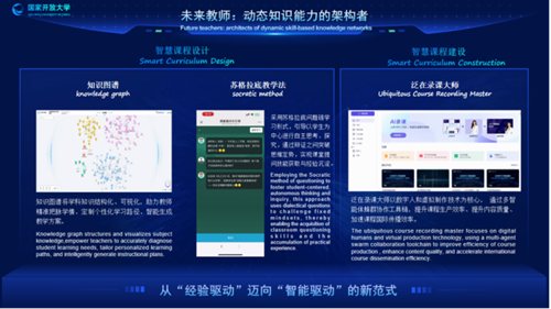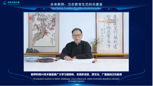 在论坛成果展上,国家开放大学展示了“数智赋能终身教育泛在可及”的实践成果以及在教育家精神引领下未来教师精神内核的“六个坚守”和能力素养的“六大突破”,同时,沉浸式展示了未来教师与数智分身“人机协同”的新型教学模式。