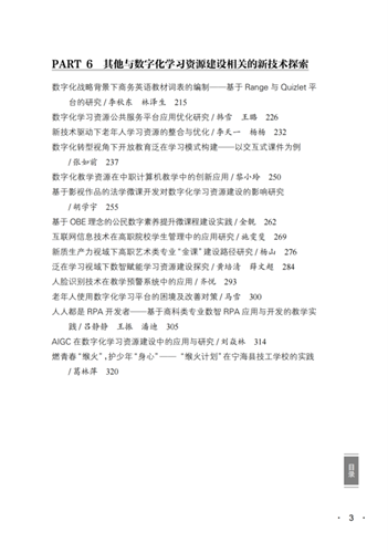 本书由国家开放大学党委副书记徐明军担任主编、网络教育数字化学习资源中心主任张暾担任副主编,全书共收录论文40篇。来自30家院校机构的58位专家学者,重点围绕数字化学习资源建设的政策研究与战略规划、虚拟实训与数字人的创新应用、人工智能、大数据等新技术在教育中的应用、知识图谱助力数字化学习资源优化等领域展开了多维度的研究与讨论。